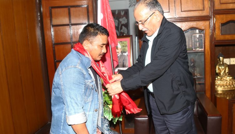 ‘साहसी युवा’ चणिकलाल तामाङलाई ‘प्रचण्ड’ द्वारा सम्मान