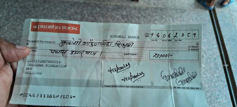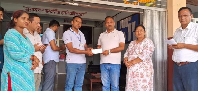 फाउन्डेसनका तर्फबाट प्रतिनिधिसभा सदस्य लेखनाथ दाहाल र फाउन्डेसनकी अध्यक्ष दीपा बोहोरा दाहालले प्रमुख प्रशासकीय अधिकृतलाई रु. ५०,००० को चेक हस्तान्तरण गरेका छन्।