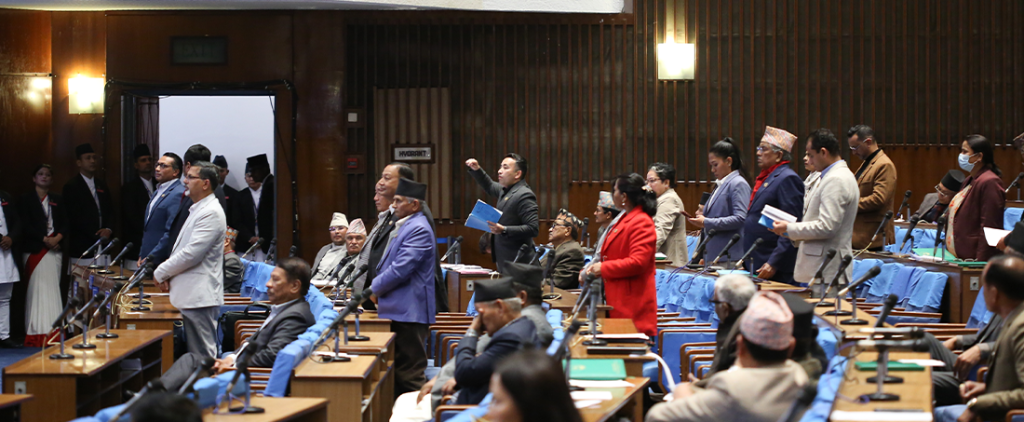 उपसभामुखले रामहरिलाई समय दिँदा संसद्मा हंगामा, प्रतिपक्षीको अवरोधपछि बैठक स्थगित